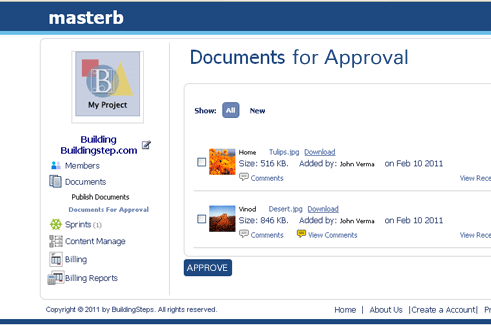 Documents that need approval from other members are sent for approval. It can be invoices, bills, drawings or pictures that needs approval from clients or contractors.